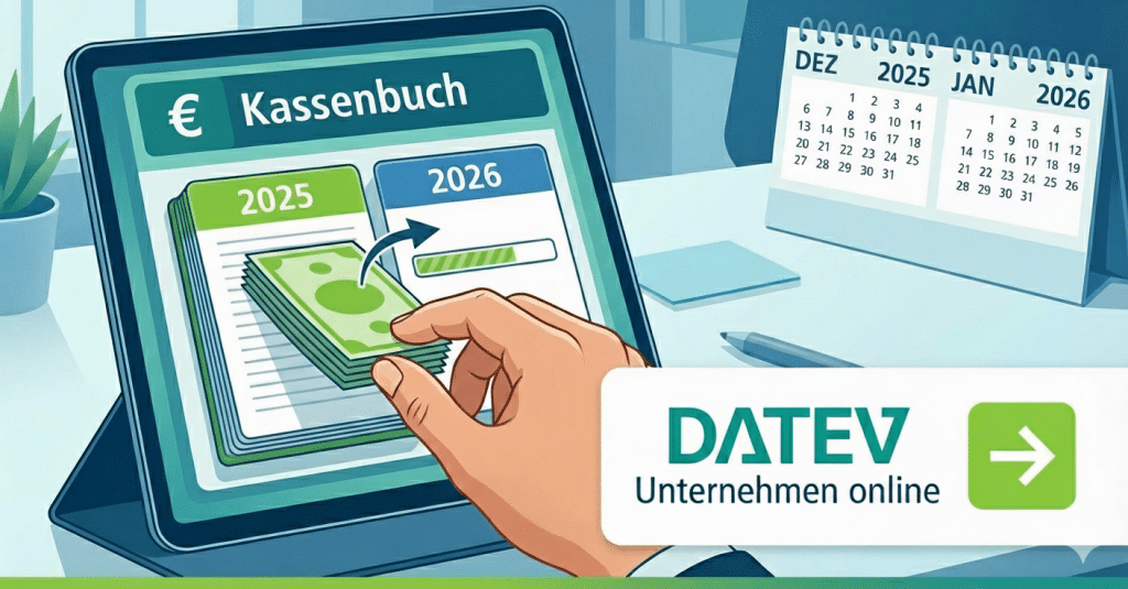 Sie nutzen das Kassenbuch in DATEV Unternehmen online? Dann müssen Sie manuell einen Jahreswechsel auf das Jahr 2026 durchführen.