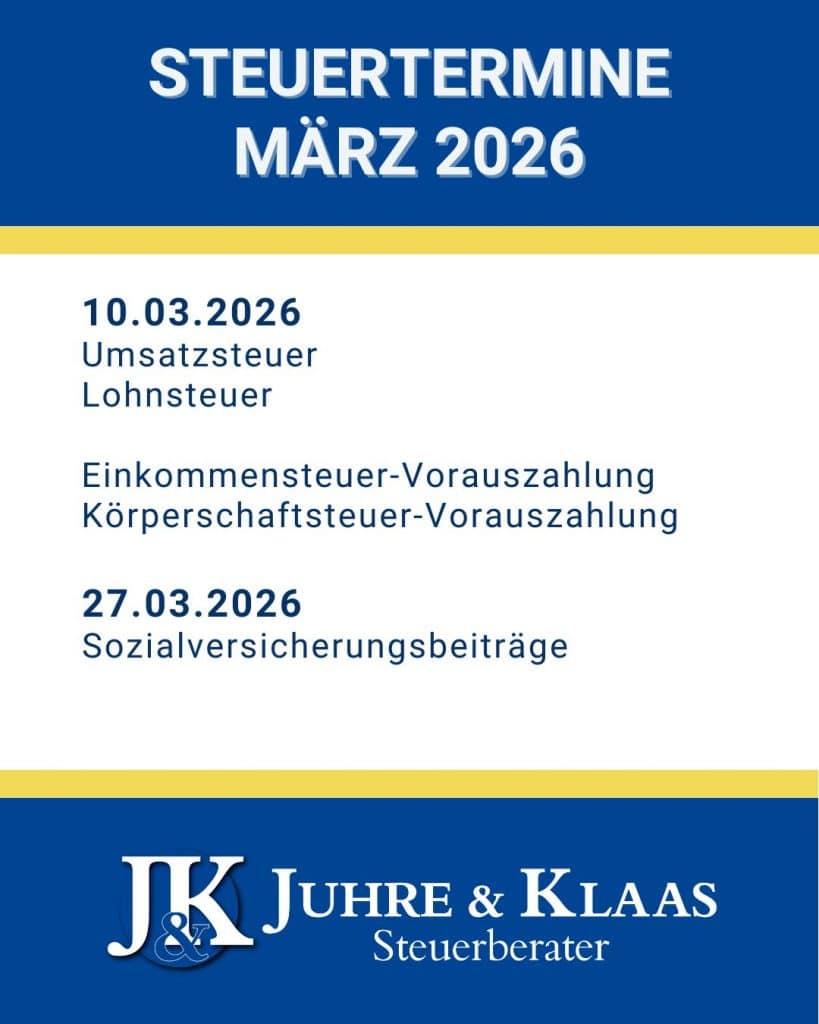 Hier sind die aktuellen Steuertermine für den März 2026.